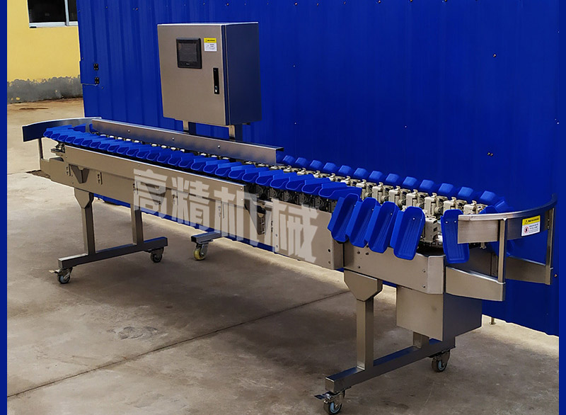 重量分選機,也稱為重量剔除機、稱重分選機。是一款高速、高精度在線檢重分揀設備,可與各種包裝生產線、輸送系統集成,主要用于產品重量是否合格、包裝是否有缺件的在線檢測。或者根據物品的不同重量運送到相應的重量范圍區域。改進設計后,重量分選機從簡單的重量檢測發展到按重量分選,分選水平也從去重領域的第一級、重量分揀發展到目前的20多級。常用于海鮮、中草藥、肉類等領域的重量和尺寸分選。
